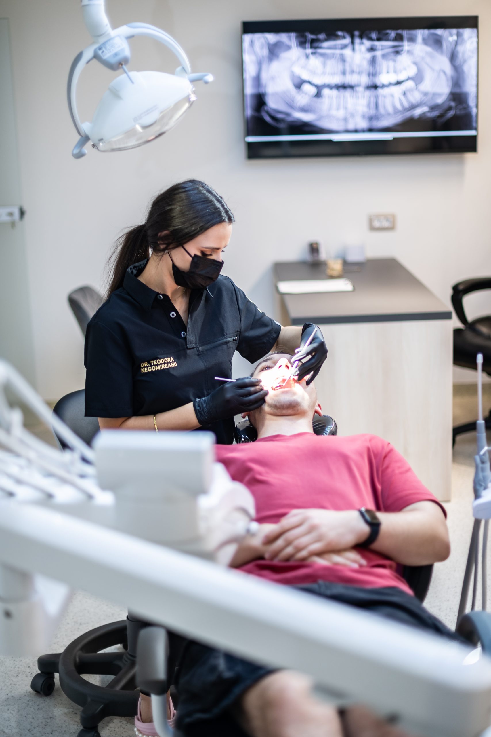 De asemenea, cabinetul se preocupă și de confortul pacientului, oferind facilități moderne precum o zonă de așteptare relaxantă, echipamente de divertisment și un personal prietenos gata să ofere suport și să răspundă la toate întrebările tale.